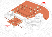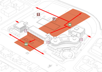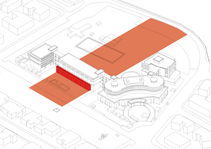 The garden is polluted by the swimming pool and is mainly unused. The amount of space is suitable for implementing the Mercado. To make the site easily accessible for visitors, the basement and the ground floor level will be cut though in the existing block B. The number of dwellings removed dwellings will be distributed by the addition of the workshops. The intervention also makes an architectural gesture to reclaim the Grande Hotel for the city and implement a new fictive wing as a development for this new era of the Grande Hotel.