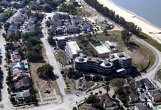 Fig. 1: Trailer of a documentary about the Grande Hotel which shows the current living conditions (Stoops 2010) A ‘White elephant’ is a proverb in the English language. It means a possession that is useless or troublesome, expensive to maintain and difficult to dispose of. The origin of the proverb is from the story of the Thai kings of Siam. He gave elephants as a gift to courtiers they disliked, in order to ruin the recipient by the great expense incurred in maintaining the animal (British dictionary). This is in short what you can tell about the Grande Hotel; it is too big, too expensive, built in the wrong period, in the wrong place and it ruined the society around it. In 1932 was year of the urban plan of Ponte Gêa designed by architects brothers Rebelo de Andrade. It had a place reserved for a hotel and an Olympic swimming pool on one of the most beautiful spots of the plan. This particular spot had a great view of the Indian Ocean, the mouth of the Buzi River and the harbour of Beira. Architect José Porto of the Gabinete de Urbanização Colonial made a concept design but refused it, in order to elaborate it. Perhaps he already had a bad feeling about the manageability of the project. In 1953 the client asked the young architect Fransico de Castro to elaborate the design and be present on the building site, for building management and to design the final detailing. The client was the Companhia de Moçambique. It had the concession to exploit the area of the present provinces of Manica and Sofala by cultivating the country and civilising the inhabitants. The concession ended in 1942 but the Companhia remain to dominate the local economy by owning the local enterprises as a large state holding. One of the main directors was Antonio Arantes e Oliveira. He was a brother of the future Mozambican governor-general and had a close connection with the fascistic dictator Salazar. Arthur Brandão was the first man of the Companhia and had also in a prime position in the regime. Prime-minister Oliveira Salazar is mainly described as an idealist. His Estado Novo was a late edition of a self-representative colonial power. Beira was dominated by Britain for a long time, duel the Rhodesian dependency to the sea harbour. The rising of the Estado Novo and the ending of the Companhia concession caused a Portuguese wave though the city. The Escudo became the only official currency, the government became dominated by the fascistic regime and the street scope got a metamorphose of new Art Deco and Modern Movement architecture. The prestigious Grande Hotel had to become the main showpiece of success of the Estado Novo in Beira. A luxury accommodation for business partners, influential persons and wealthy tourists which mainly should came from Rhodesia, South Africa and from Portugal with its colonies. Inauguration